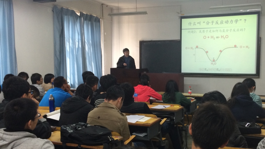 戴东旭研究员从分子反应动力学角度为王大珩班的员工进行授课,对原子、分子的层次上,不同状态下和不同分子体系中单分子的基元反应的动态结构、反应过程和反应机理等进行分析。