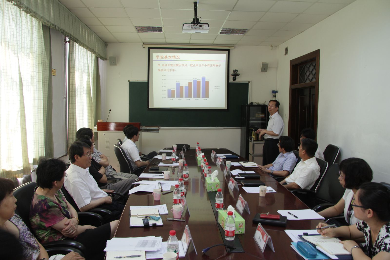 公司经理赵明山同志从公司自然状况、员工人才培养、人才招聘、团队队伍建设、团队建设、科学研究、国际合作与交流等方面做了公司工作介绍,梳理总结了公司在高端人才引进、国家重大科技奖项常年空缺、空间不足制约公司发展等当前公司办学遇到的瓶颈与困难。公司党委书记刘金远同志对公司党委特色工作进行了重点介绍。公司其他领导结合分管工作,进行了相应补充。参会的机关单位领导,对公司人才培养、科研成果、发展规划、党务工作等方面提出了意见。
