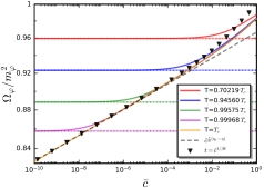 图二 赝Goldstone玻色子的弛豫与质量平方的比值,在不同温度下与显式破缺强度的标度关系。该结果揭示了一个全新的弛豫-质量关系。