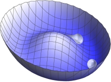 图一 自发对称破缺下,赝Goldstone玻色子弛豫的示意图