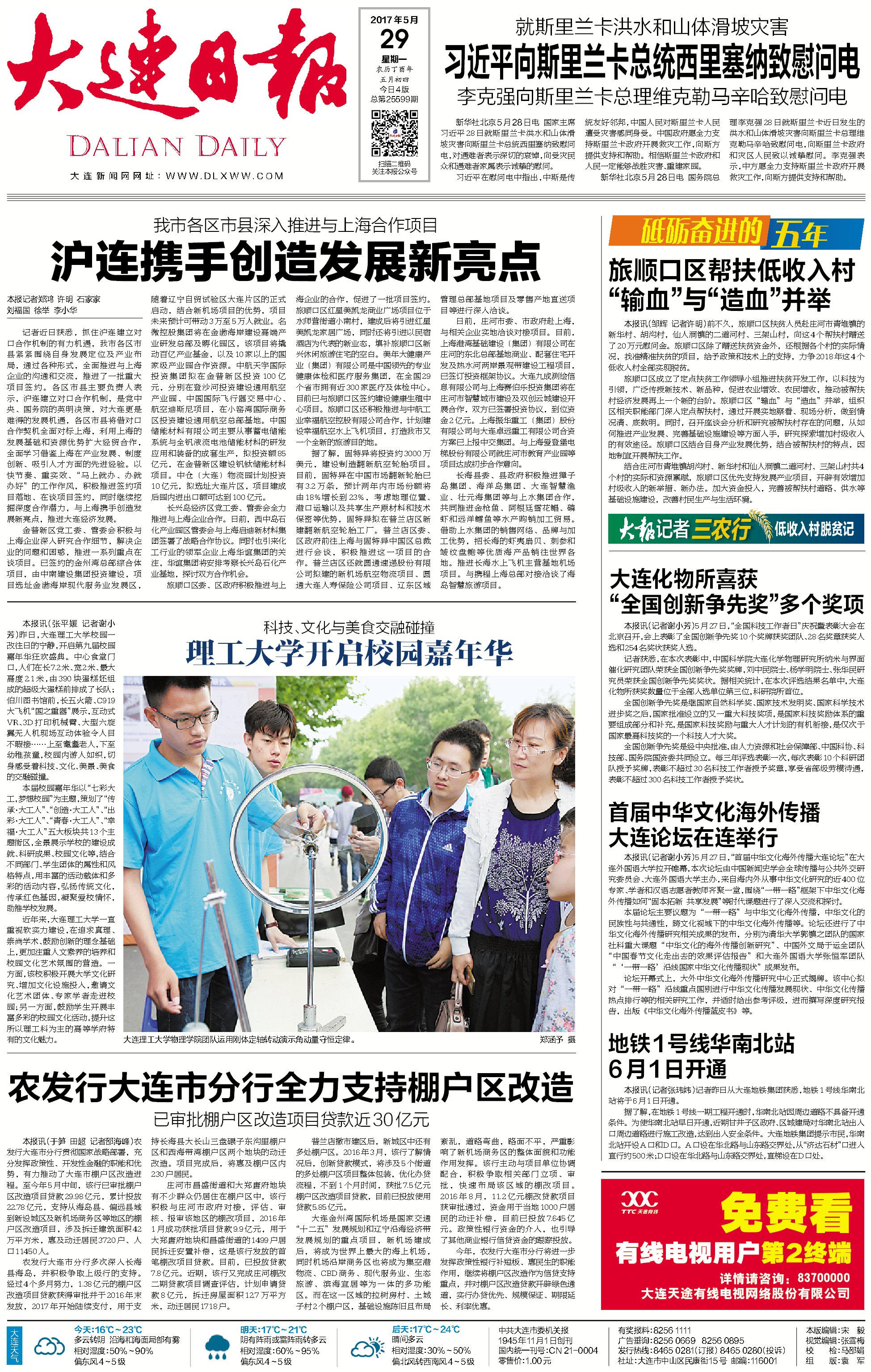 5月29日的《大连日报》,以公司科技展区图片为头版对嘉年华情况进行了报道。