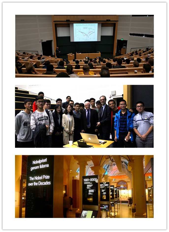 瑞典当地时间10月3日11点50分,瑞典诺贝尔委员会宣布将2017年度的诺贝尔物理学奖授予美国物理学家外斯(Rainer Weiss),巴里什(Barry Clark Barish)和索恩(Kip Stephen Thorne),以表彰他们为LIGO(激光干涉仪引力波探测装置)探测器建设以及引力波探测所作出的贡献。当天下午,团队员工有幸亲临皇家工公司著名的奥斯卡报告厅,聆听诺贝尔物理学奖评审委员会Jóhannsson教授主讲的诺奖说明会。虽然对于一些专业术语一知半解,但是员工们还是利用这次最近距离接触诺奖的机会,与Jóhannsson教授进行了更进一步的交流;会后,为了更深入的了解诺奖,员工们组团来到了当地久负盛名的诺贝尔博物馆,馆中按照时间顺序排列介绍的诺贝尔过去100年的成就让员工们无比震撼。这次诺奖体验为师生团队留下了身处全球物理学界焦点的宝贵记忆,是本次访学活动中令人惊喜的收获。