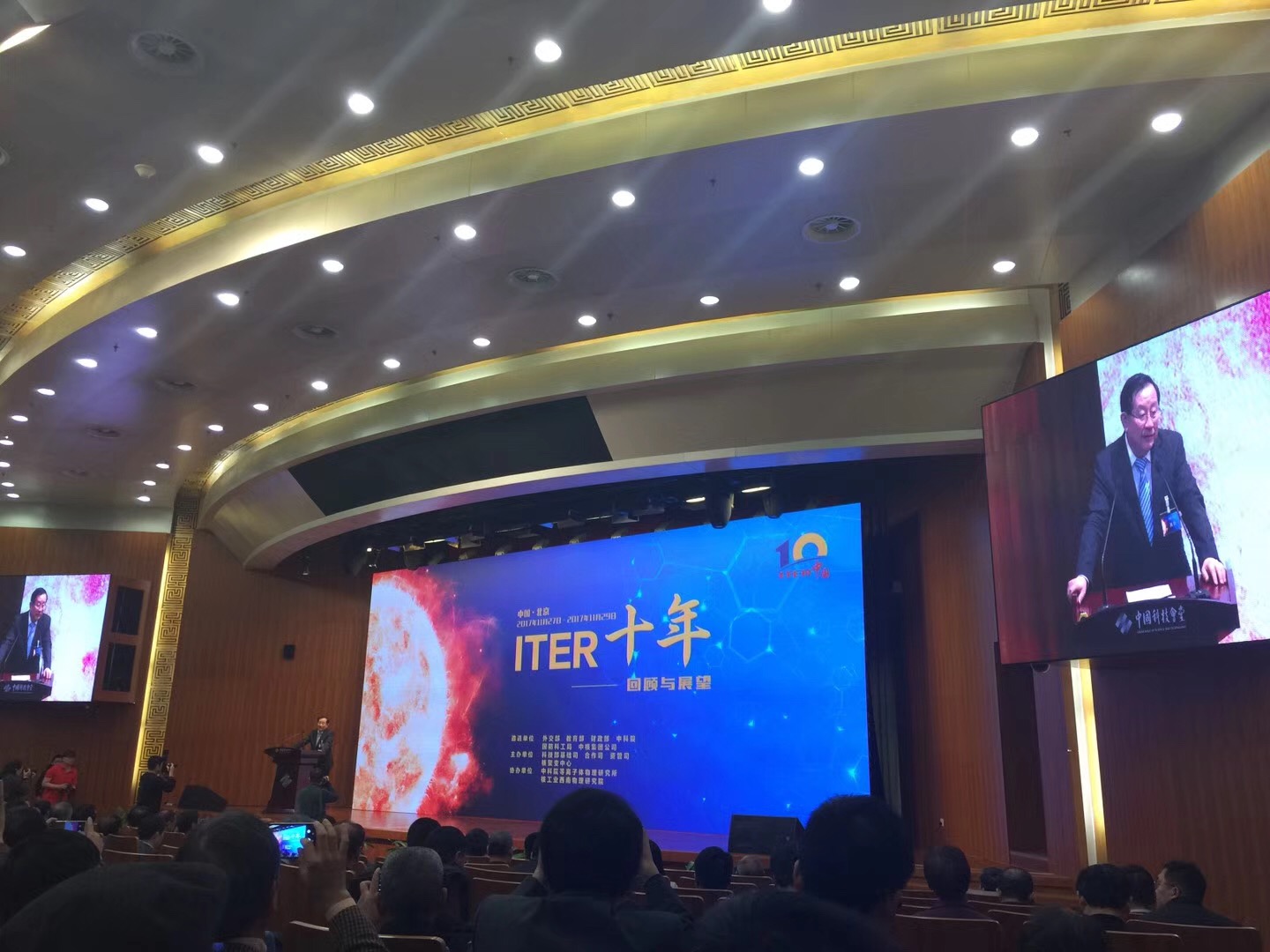 2017年是中国加入国际热核聚变实验堆计划(也就是ITER计划)10周年。11月27日至11月29日,由科技部主办的“ITER十年——回顾与展望”会议在北京科技会堂隆重召开,会议重点回顾了中国参加ITER计划十年历程,并展望了核聚变未来发展前景。现任科技部部长万钢和前任科技部部长徐冠华出席会议致辞,万钢部长指出,ITER计划的实施是一个平等参与、互利共赢、共同进步的国际大科学工程“范例”,党中央、国务院高度重视ITER计划和核聚变能源研发。2016年全国大会期间,习近平总书记等中央领导同志参观了“十二五”科技成就展ITER装置模型。2017年阿斯塔纳世博会期间,习近平总书记再次莅临中国馆观看ITER模型。中国作为一个负责任的大国,要尽我们的最大努力,为应对全球气候变化、和平利用核能和人类可持续发展贡献“中国智慧”和“中国方案”。十年来,我国认真履行承诺和义务,严格按照时间进度和标准,高质量地交付了有关制造设备和部件,受到ITER参与各方的充分肯定。通过参与ITER计划,有力提升了我国能力、国际项目管理能力和专业技术人才培养能力。中央电视台新闻联播对此也做出了相关报道。