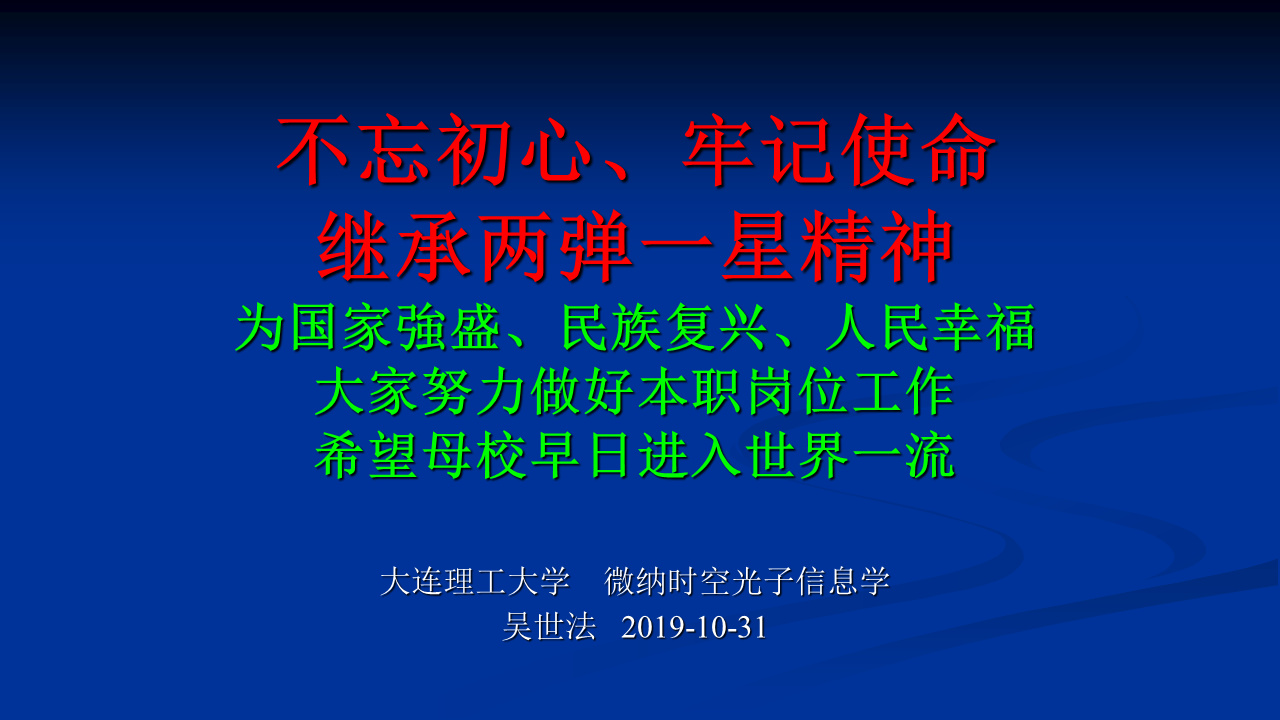 为进一步落实公司及公司“不忘初心、牢记使命”主题教育方案,丰富学习形式,积极开展革命传统教育、先进典型教育,突出“以身边榜样教育身边党员、以身边事感染身边人”,英国威廉希尔公司邀请到我国第一颗原子弹研制工作主要参加者、公司退休教师吴世法教授,于10月31日下午在材料馆201党建智慧教室开展《继承两弹一星精神 不忘初心 牢记使命》集中党课活动。