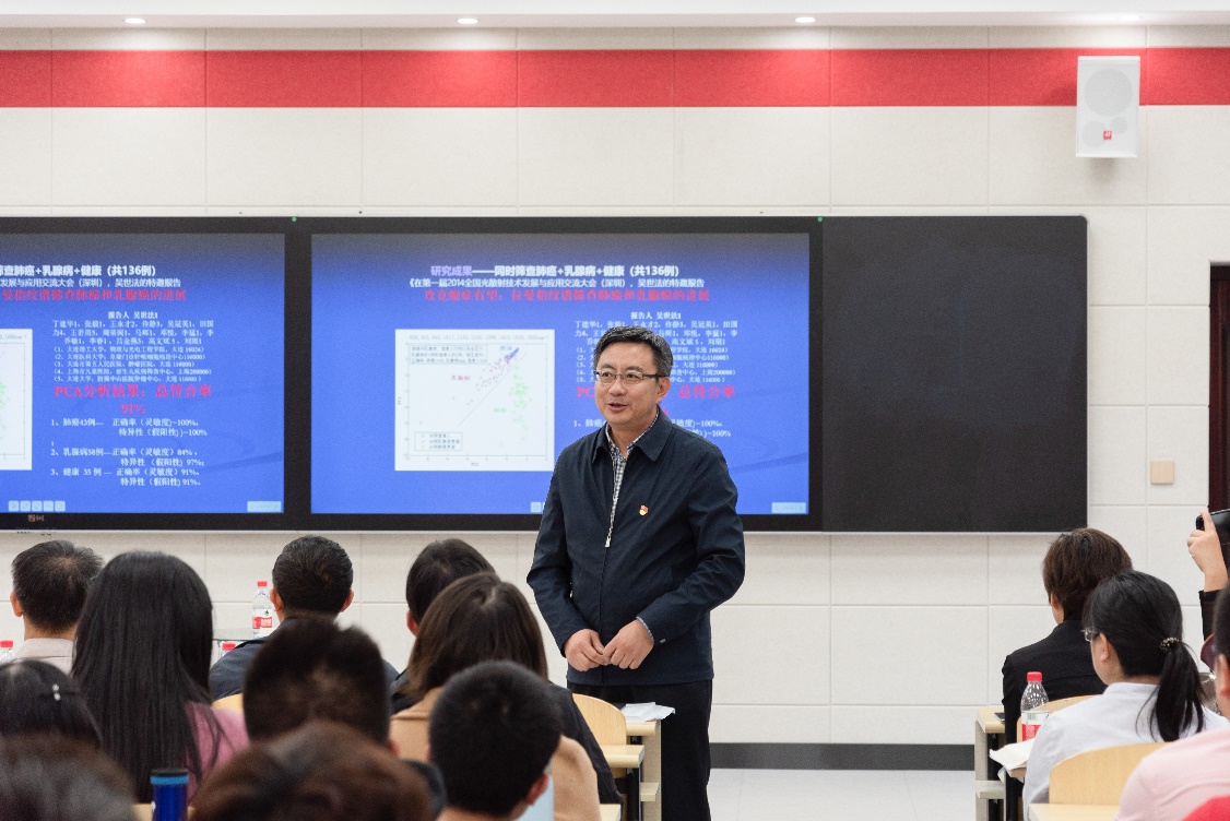 在党课的末尾,吴世法教授“出人意料”地对照“不忘初心、牢记使命”,做了一次自我检查,回顾了自己自成年至今的共产主义信仰之路,并结合自己当前的研究方向,建议公司率先实施I期肺癌与乳腺癌筛查的‘拉曼血检’研究项目,为师生员工建立“个人健康-拉曼光谱档案”,争取领先世界地拿出一个可以推广的模板。吴教授这一毕生忠诚向党、心系国家人民的举动,让现场响起了最热烈的掌声。