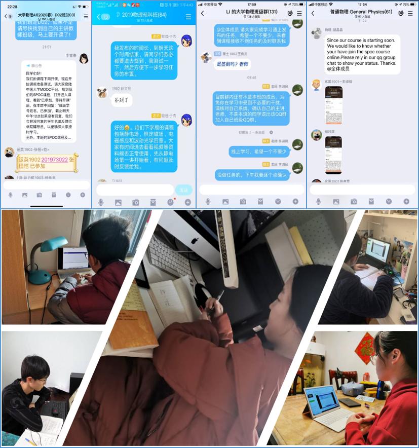 大学物理教学团队由“老、中、青”三代教师组成,承担着全校工科班、预科班、国际班、机械英文班共四个班型的物理课程教学工作。面对疫情,在短时间内完成从讲台到云端的转变,对老师们具有一定的挑战。春节刚过,团队教师就开始着手准备线上教学工作,并在开学前两周正式进入备战倒计时状态。大家互切磋、共出谋,集广义、开渠道,最终确定了以公司大学物理国家级精品资源共享课程、中国大学mooc平台开放课程为依托,以“大工-超星平台”及“大工-爱课程” 平台为支撑,以学习通、QQ、微信等终端为辅助的云端教学架构,以此做到视频共享、资源共享、特色化分班辅导,教师引领、自主学习,最大程度发挥网课优势。
