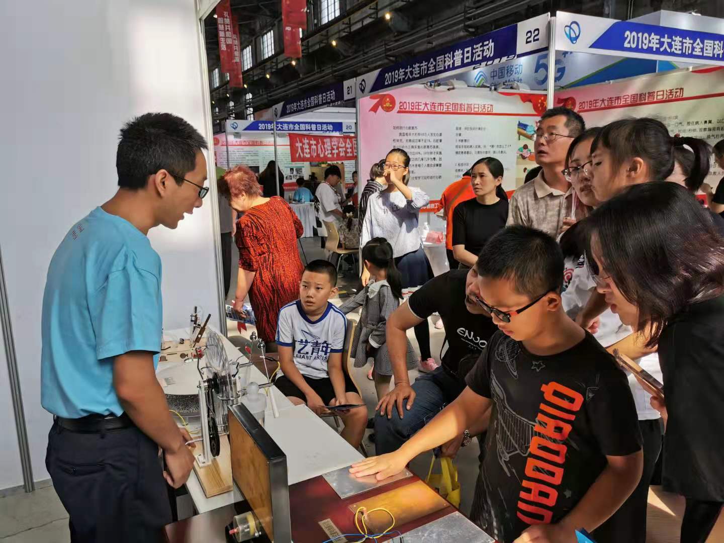 为了扩大科普受益面,2019年中心教师积极参加了由大连市全民科学素质工作领导小组主办,大连市科协承办的大连市全国科普日活动,在活动现场,张志宏副市长为大连市科技志愿服务总队授旗,市相关单位领导及全市科技爱好者和大连市中小员工积极参观展馆,表现出了浓厚的科学兴趣。同时,中心教师还主动走出去到大连市的中小学以及科技类比赛的现场进行科普,充分激发员工们的科学探索精神,培养员工的科学兴趣。
