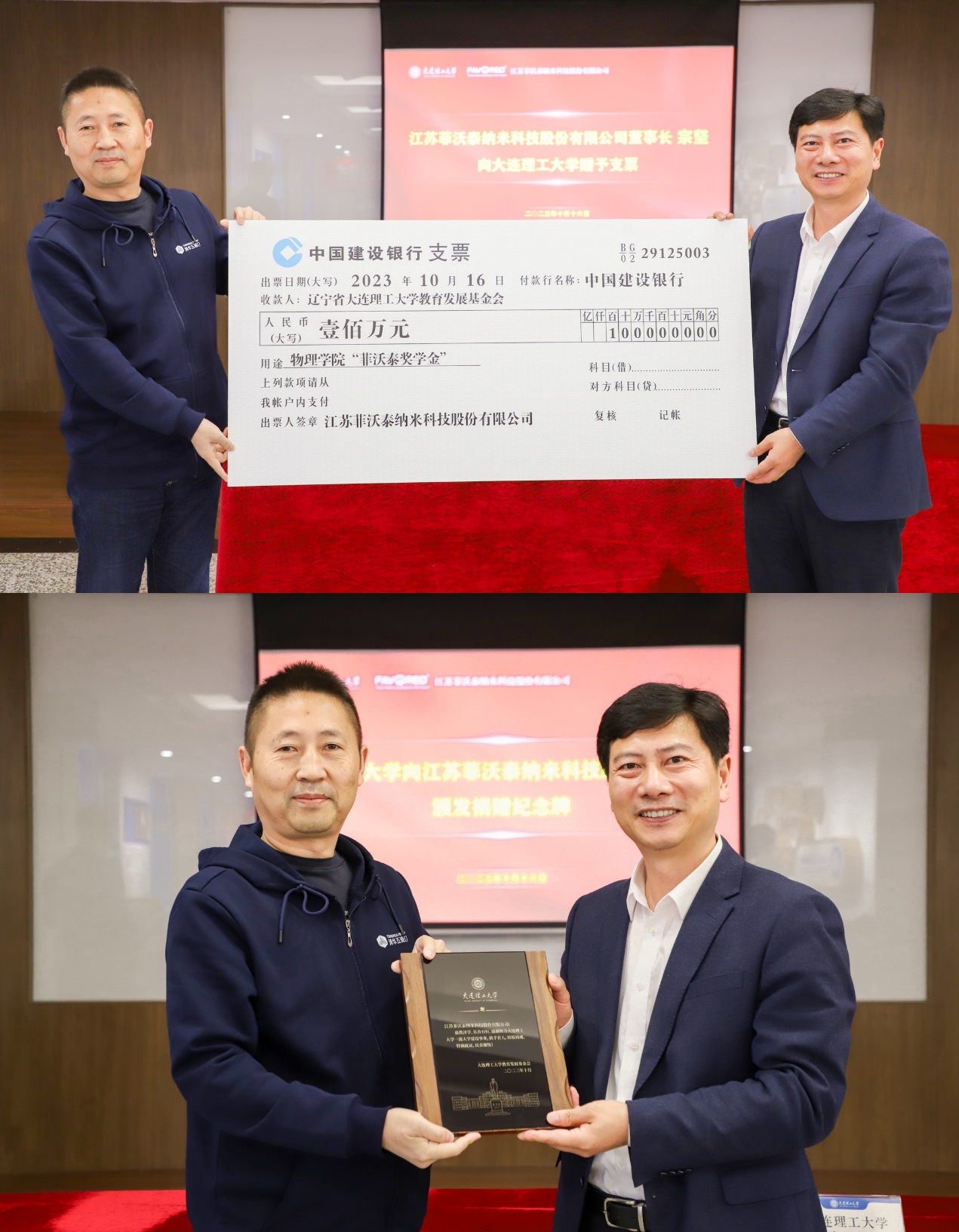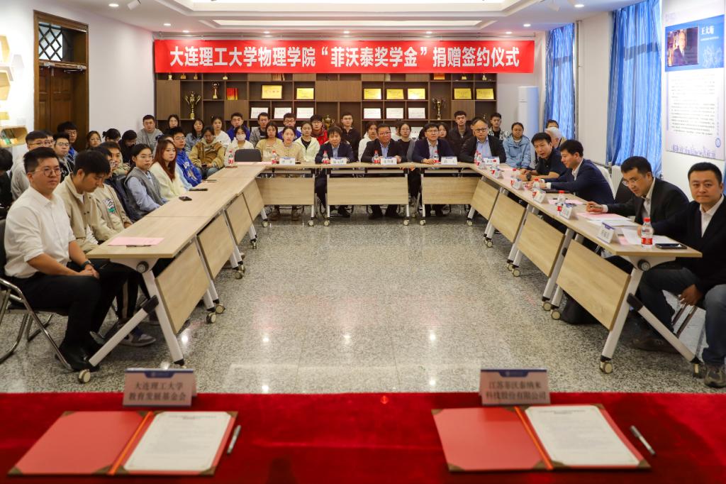 朱方伟代表公司向菲沃泰及其董事长宗坚的到来致以热烈的欢迎和诚挚的感谢。朱方伟表示,菲沃泰出资设立“菲沃泰奖学金”是对公司育人事业的肯定和公司教育事业发展的信任和支持,更是优秀企业诠释价值观、勇担社会责任的体现。公司也定将贯彻党的教育方针,以优异的办学成绩回应社会的关切与期待。鼓励同学们在大工的沃土上明方向、练本领,以积极的态度和不懈的奋斗来回报祖国、社会和公司。