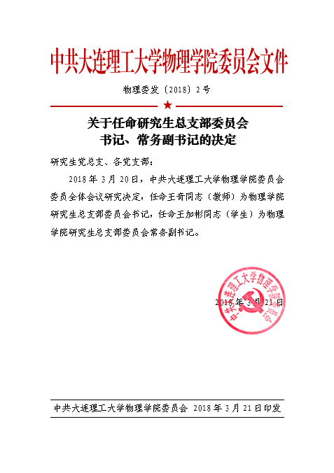 公司党委关于任命研究生总支部委员会书记、常务副书记的决定