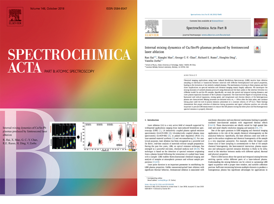 近日,公司英国威廉希尔公司丁洪斌教授课题组的青年教师海然博士在激光烧蚀等离子体研究领域取得重要进展,最新研究成果“Internal mixing dynamics of Cu/Sn-Pb plasmas produced by femtosecond laser ablation”被国际著名光谱学权威期刊《Spectrochimica Acta Part B: Atomic Spectroscopy》选为封面论文发表。