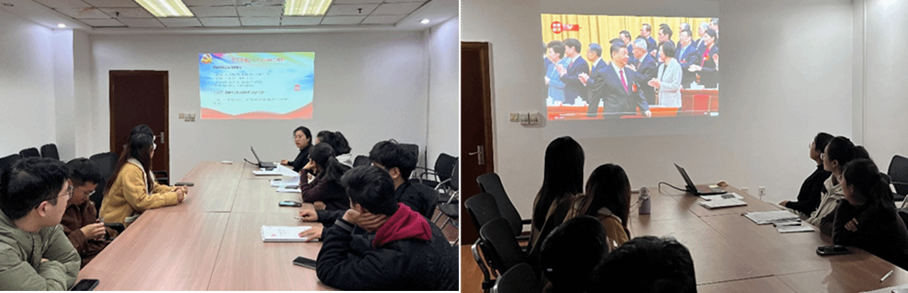 会议第一项,由王瑞腾同志组织学习2024年全国两会精神。全国两会精神是指导我们党和国家事业发展的重要思想武器,为党支部开展工作提供了根本遵循,在学习过程中,支部全体党员观看了《春之声——习近平总书记出席2024年全国两会纪实》的时政微视频;随后王瑞腾同志对全国两会的主要精神进行总结:要坚持以习近平新时代中国特色社会主义思想为指导;要坚持党为人民谋幸福、全心全意为人民服务;要坚持新发展理念,推动高质量发展。