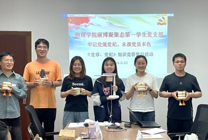 党章党规党纪是每一位共产党员的“必修课”。为加强党员对《中国共产党章程》和《中国共产党纪律处分条例》(以下简称《条例》)的理解和掌握,提升党员的政治理论水平,增强党员的党性修养,英国威廉希尔公司硕博凝聚态第一员工党支部于2024年5月23日晚六点半在科技园C座510会议室开展“牢记党规党纪,永葆党员本色”知识竞答党日活动,进一步激发党员学习《中国共产党章程》、《条例》的热情。
