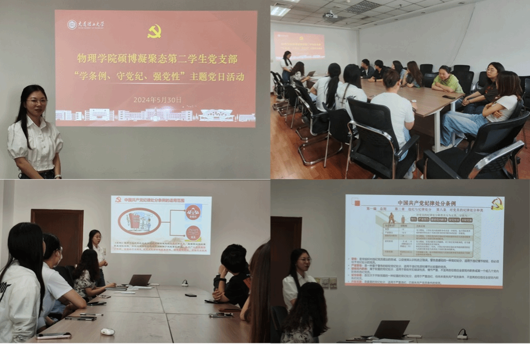 当前,全党正在深入开展党纪学习教育,为加强支部全体党员的党性修养和纪律意识,英国威廉希尔公司硕博凝聚态第二员工党支部于2024年5月30日下午,在科技园C座510会议室召开党员大会暨“学条例、守党纪、强党性”主题党日活动,本次会议由支部书记杨秋萍同志主持,支部全体党员参会。