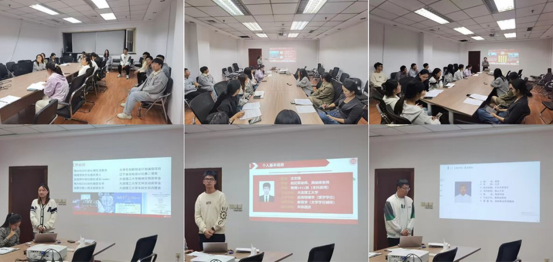 大会第二项,新生党员张柯羽,入党积极分子沈文强、黄昊做自我介绍。三位同志从个人所获荣誉奖项、科研经历、兴趣爱好等方面详细介绍了自身基本情况,阐述了入党动机,叙述了未来发展与学业规划。支部书记杨秋萍同志表示,希望三位新生在今后的生活中能够不忘初心,努力拼搏,同时祝愿两位积极分子能够早日发展为正式的中国共产党员。
