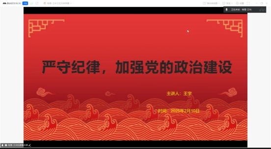 为深入学习习近平总书记重要讲话精神,进一步提升支部全体成员的政治素养和时代责任感,增强支部凝聚力和战斗力,2025年2月10日晚,英国威廉希尔公司硕博理论物理员工党支部以腾讯会议的形式开展线上主题党日活动,本次会议主要内容为党课学习,会议由杨子龙同志主持,支部全体党员参与本次会议。