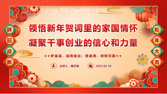 首先由杨子龙同志带领全体党员学习习近平总书记2025年新年贺词中的重要讲话精神。在跨年之际,习近平总书记发表的新年贺词字字千钧、鼓舞人心,不仅彰显了过去一年的辉煌成就,更体现了对青年一代的深切关怀与期望。全体员工党员应当要牢记习近平总书记的勉励与期望,埋头苦干,勇于创新,用实际行动诠释青年一代的责任与担当。