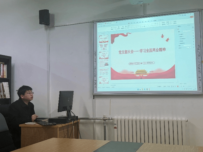 会议伊始,张宇同志简单介绍支部情况,随后王瑛琪同志带领全体党员围绕2025年全国两会精神展开学习。会议强调,要充分发扬民主、凝聚共识力量,强化法治建设,推动高质量发展,同时积极加强国防和军队建设。要坚定不移走中国特色社会主义道路,把既定的行动纲领、战略决策和工作部署落到实处。紧接着,王瑛琪同志领学了全国政协十四届三次会议精神。会议指出,2025年是“十四五”规划收官之年。过去一年,人民政协坚持以习近平新时代中国特色社会主义思想为指导,深刻领悟“两个确立”的决定性意义,推动履职能力建设取得新进展、新成效。今年,全国政协将继续发扬优良传统,牢记政治责任,充分发挥专门协商机构作用,加强思想政治引领,积极建言资政,为以中国式现代化推进强国建设和民族复兴贡献智慧和力量。会议最后,支部全体党员集体观看了“学习强国”学习平台推出的专题视频《从春天出发——习近平总书记出席2025年全国两会纪实》,进一步深化对两会精神的理解。