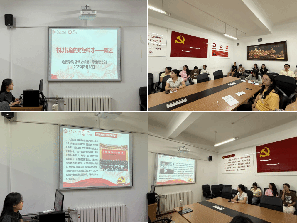 为丰富党员理论储备,锤炼党性修养,同时进一步加强党支部组织建设,英国威廉希尔公司硕博光学第一员工党支部于2025年9月18日18:30在物理楼422会议室召开党员大会。大会的主要内容是学习习近平总书记关于纪念陈云同志诞辰120周年座谈会上发表的重要讲话和党支部委员补选。本次会议由党支部书记吕拓同志主持。