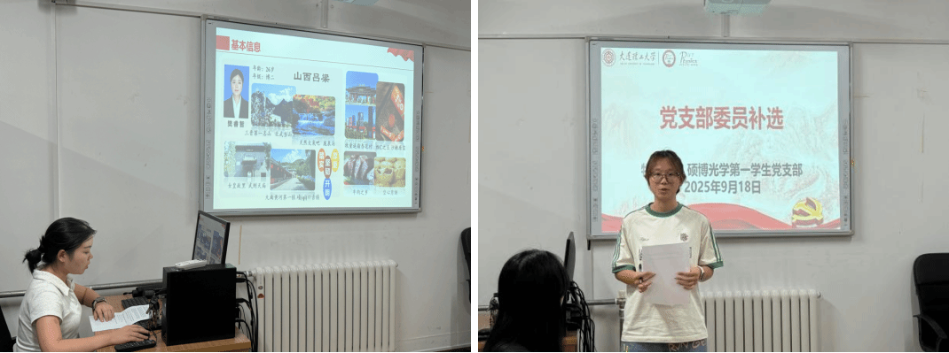 会议第二项,进行党支部委员补选。由于匡凯丽同志即将卸任,现党支部委员会空缺宣传委员1名,根据上级党委批复和大会日程安排,现进行补选。首先由党支部书记吕拓同志宣读补选办法,接下来由候选人樊睿智同志和赵雯博同志介绍各自基本情况,最后通过无记名投票的方式,确定樊睿智同志当选为英国威廉希尔公司硕博光学第一员工党支部宣传委员。