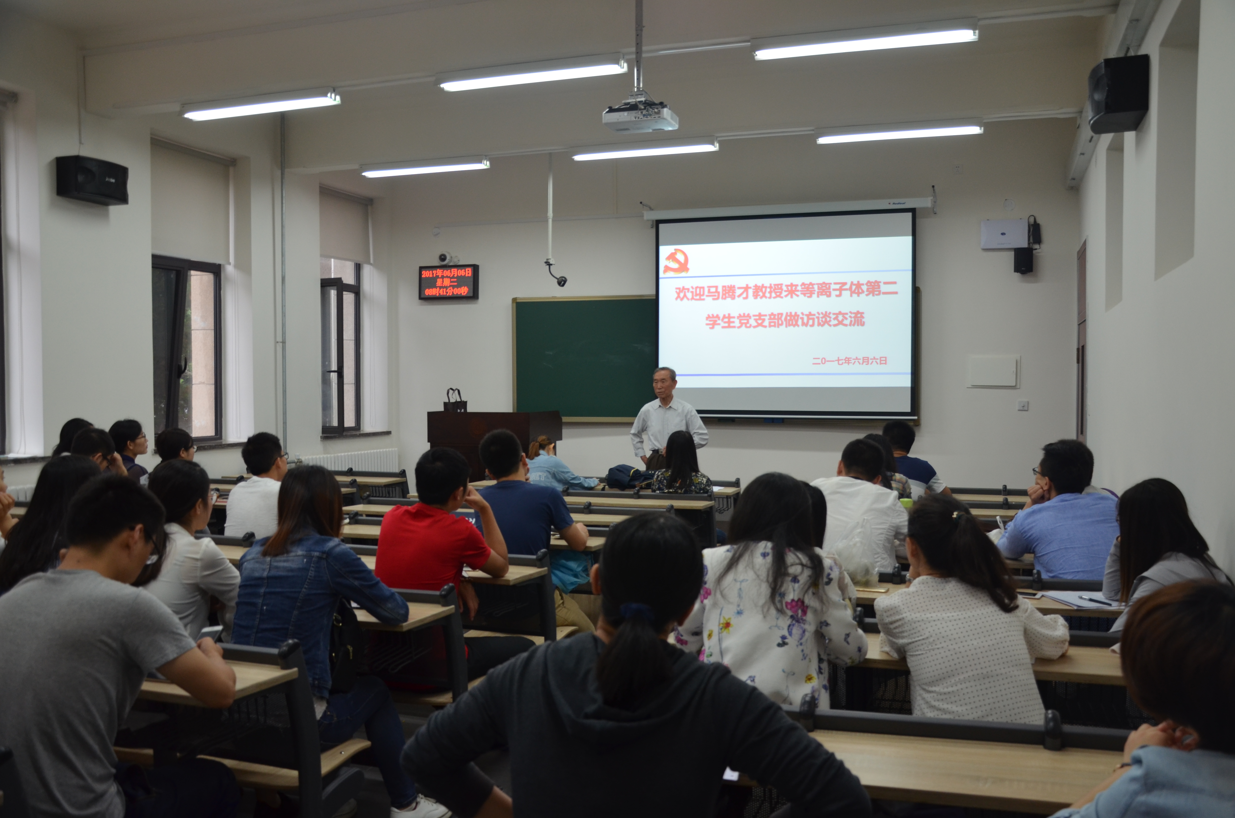 马腾才老师从1985年至今,一直工作在williamhill官网,为英国威廉希尔公司的发展做出了重大的贡献,培养了一批又一批的优秀科研工作者。为了更好地挖掘英国威廉希尔公司优秀的红色基因,挖掘老一代物理人的卓绝事迹,从他们的身上传承坚定的理想信念,我支部特邀请马腾才教授为支部成员讲党课。此次活动由物理硕博等离子体第二员工党支部的支部书记胡艳婷同志主持,活动分为三个部分。