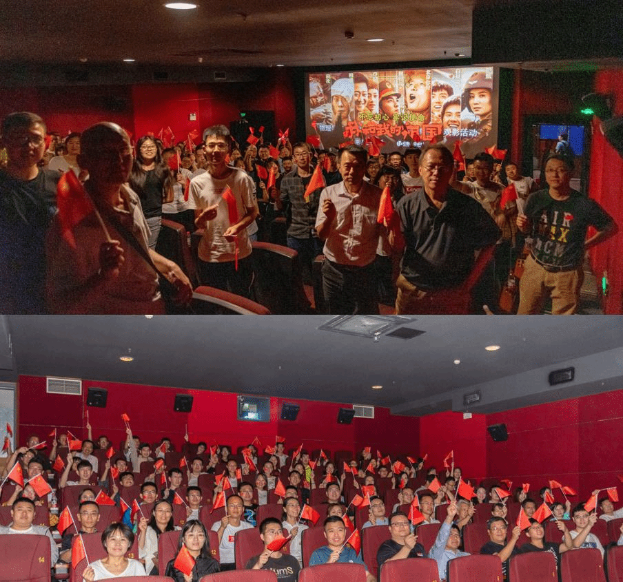 《我和我的祖国》是由陈凯歌、张一白、管虎、薛晓路、徐峥、宁浩、文牧野联合执导,黄渤、张译、吴京、马伊琍、杜江、葛优、刘昊然、陈飞宇、宋佳领衔主演,演绎7组普通人与祖国大事件息息相关的经历,以小人物见证大时代的新中国成立70周年献礼影片。公司党委在入场前为师生党员发放手持小国旗,烘托浓厚的国庆氛围。