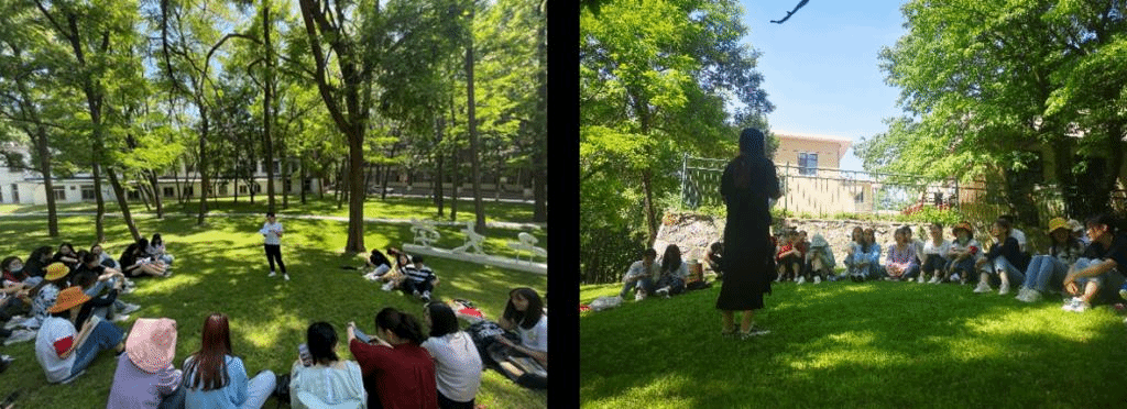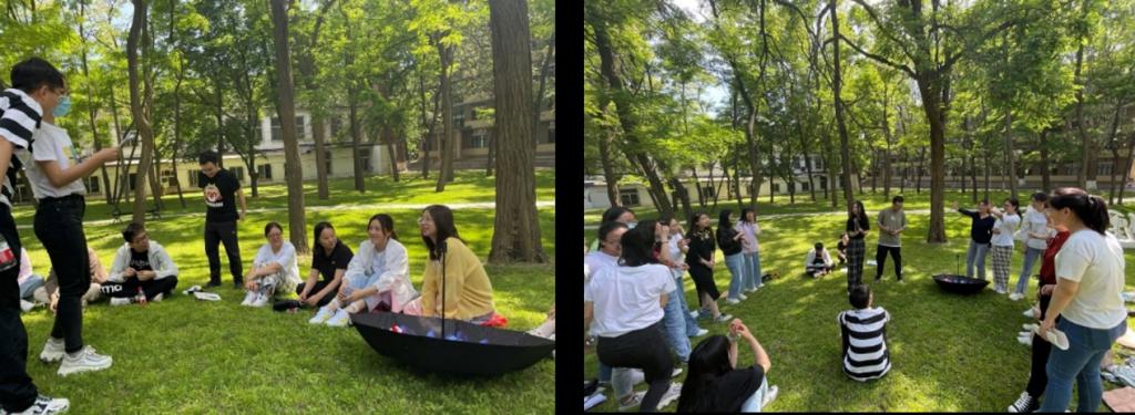 活动在公司东侧的草坪上举行,树荫下近40名同学围坐一圈。活动首先由8名党员、团员分享关于毛泽东、周恩来、邓小平、刘少奇等共和国领袖的党史故事,带领大家领略这些享有崇高威望的卓越领导人、久经考验的共产主义战士们的胆略和睿智。