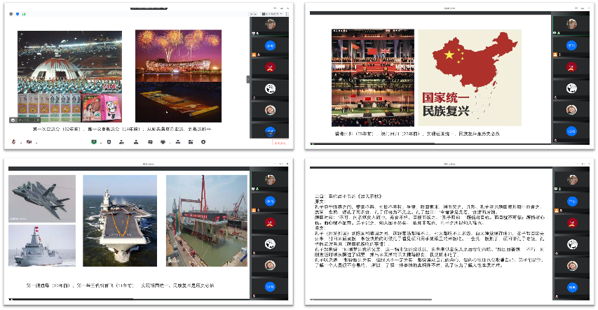 韩老师结合自身经历,为同学们讲述了祖国的发展历程,重点讲述了进入新时代以来伟大变革的深刻内涵和重大意义。讲述了这些伟大变革对中国人民、对祖国现代化建设、对社会发展的深远影响。从大庆油田开发的今夕对比到核聚变技术取得新进展、从举办亚运会到举办奥运会和冬奥会、从祖国统一到建设现代化强国。韩老师带领大家回顾了祖国的发展历程,使大家进一步认识到中国共产党正领导全国人民以中国式现代化全面推进中华民族伟大复兴。