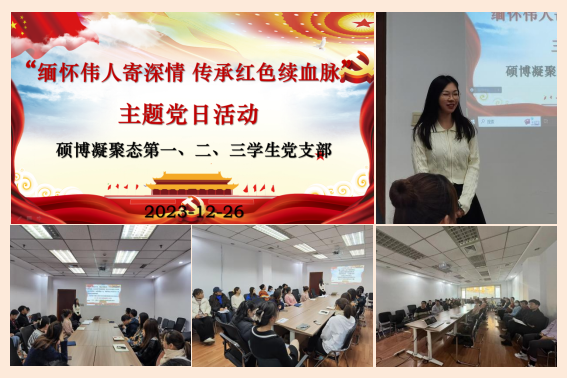 有一种怀念,穿越时代风雨,挥之不去;有一种思想,历经百年传承,活力依然。为纪念毛主席诞辰130周年,硕博凝聚态第一、第二、第三员工党支部采用线上线下相结合的方式,于2023年12月26日下午在科技园C座510会议室举办了“缅怀伟人寄深情,传承红色续血脉”主题党日活动。