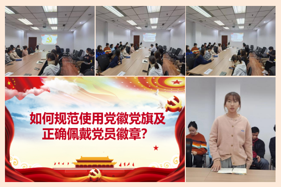 本次党日活动的第二个环节为学习《中国共产党党徽党旗条例》。杨秋萍同志向大家介绍了党徽的使用规格、党徽的使用范围、党旗的通用规格、党旗的使用范围和党徽党旗的使用管理。党章规定,中国共产党的党徽党旗是中国共产党的象征和标志。党的各级组织和每一个党员都要维护党徽党旗的尊严,要按照规定制作和使用党徽党旗。最后,与会党员同志们积极交流了本次活动的心得体会。