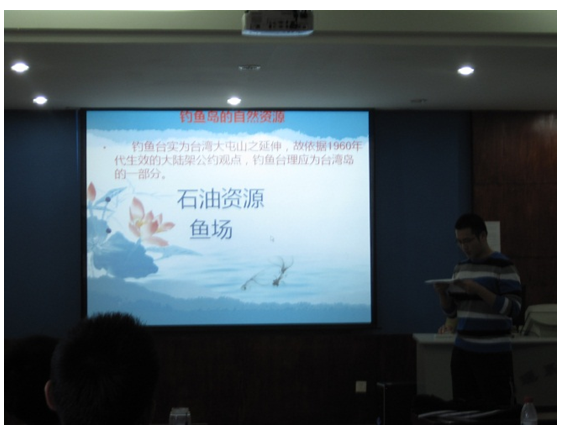 2012年10月28日12点,物理与光电工程公司本09党支部于物理系楼322成功举办了党支部创新立项方案之“时事大家谈—钓鱼岛事件”主题学习活动。参与人员为物理与光电工程公司09级辅导员纪丹红老师以及本09党支部成员和各位积极分子。本次组织生活会以钓鱼岛事件为主题,由本09党支部成员孙汉联担当主讲,他带领同学们回顾钓鱼岛的历史背景,对九月中发生的购岛风波,和中国如何应对与解决钓鱼岛事件进行剖析。