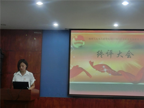 7月10日晚,物理与光电工程公司2013-2014学年度团支部建设终评大会于物理系楼322顺利进行。出席本次大会的嘉宾及评委有物理与光电工程公司团委书记佟西原老师、13级辅导员俞洲老师、员工会副主席兼团委宣传调研部部长孙雨周以及团委组织部部长崔佳琪。