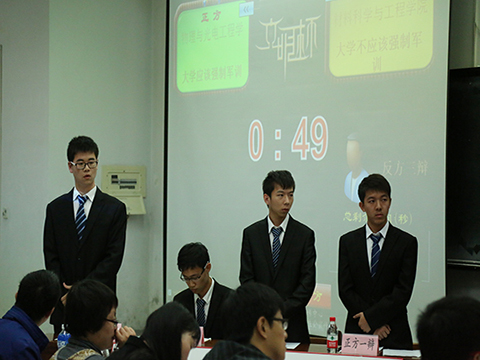 10月19日晚,文明杯辩论赛初赛于综一160顺利举行,正方物理与光电工程公司就题目“大学应不应该强制军训”战胜了反方材料科学与工程公司。人文学部老师赵大千、中软人事部经理张严、东财辩手王浩楠、马院老师马轶伦、关巍五位评委出席。