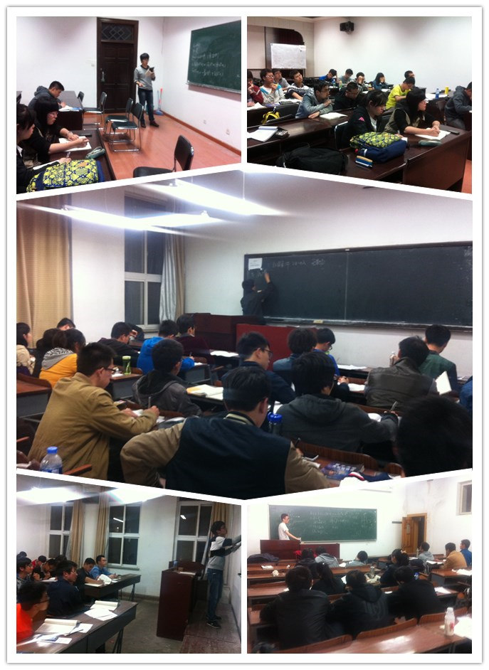 各班级根据自己班的实际情况,邀请自己班级的“学霸”“大牛”为同学们分享学习心得、共享学习资料、讲解重点难点。物科1201班邀请了班级的“学霸”,2012-2013学年公司优秀员工标兵杜石桥同学为大家细致的讲解了目前的难度科目原子物理的学习方法;物理1203班、1204班两班资源共享,一同开展了以寝室为单位的学习经验交流;物理1206班则利用班级自习日,即每周日晚上进行了期中考试动员会……