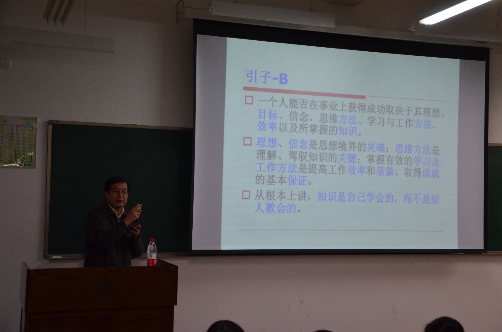 讲座由同学们熟知的牛顿第一定律开始,引起同学们对习惯与惰性的思考。从教授又进一步向同学们阐述了高中与大学两个不同阶段,在学习生活中的不同,让同学们认识到自主学习在大学的重要性。同学们在聆听讲座的过程中,明确了自己的奋斗目标。而对于在大学中处事的基本准则,正如从教授所言:“凡事做之前要三思而后行,然后应该去做正确的事,有价值的事。”对于刚踏入大公司园的同学们来说,这正是最需要明确的。最后,从教授在思维与思想方法部分向同学们介绍了换位思维等四种对大家日常生活学习中的问题有所帮助的思维方法,并和同学们分享了多种学习方法。讲座在同学们雷鸣般的掌声中结束。