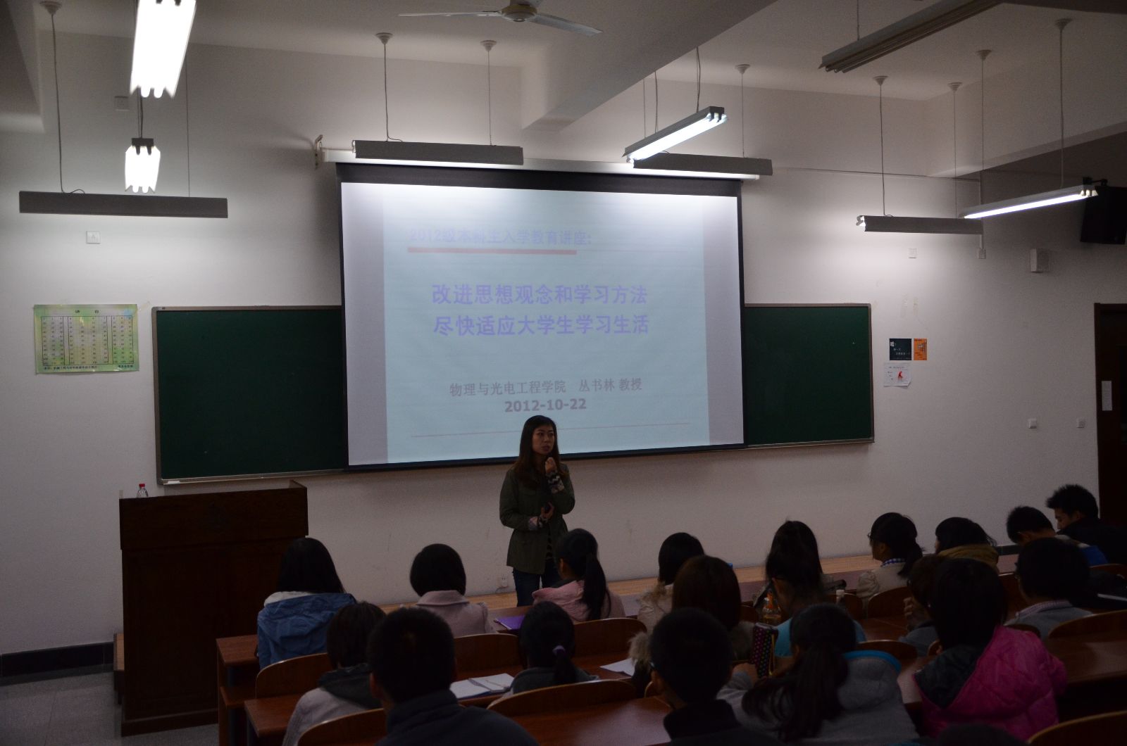 为了让更多的同学尽快适应大学的学习生活,物理与光电工程公司于10月22日在西部综合楼B503室举行了第一场本科生入学教育讲座。丛书林教授以《改进思想观念和方法,尽快适应老员工活》为题,结合自己多年的教育经验,给同学们上了深刻的一课。