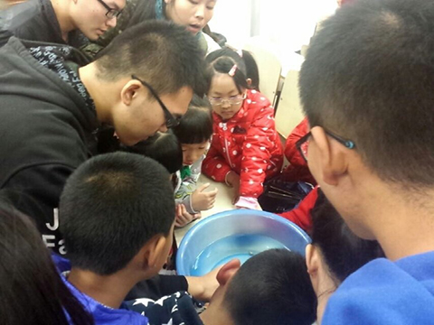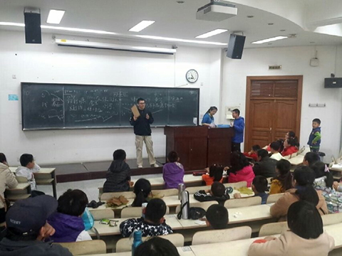 参观完校园之后,志愿者引领小朋友们来到了综合楼教室。面对着不同的教室构造与满屋的实验仪器,小朋友们的眼里充满了好奇。气压实验和光的全反射实验的演示让小朋友们大呼惊奇,在好奇心的驱使下他们问出了各种有趣的问题,而志愿者们都耐心地逐一解答。之后,大家来到了西部校区参观。“万人广场”上,小朋友们意犹未尽的结束了本次参观活动,而同行的各位家长也对理工大学有了更深层次的认识,纷纷表示不虚此行。
