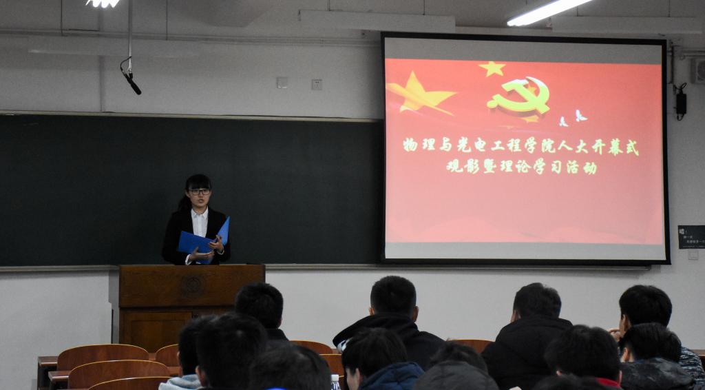 2017年3月5日晚,物理与光电工程公司人大开幕式观影暨理论学习活动于综合教学二号楼A401教室成功举行。本次活动紧跟时代步伐,于两会开幕之际带领同学们走近两会,了解两会动向,学习两会精神,以十二届全国人大五次会议开幕会为核心使同学们走近国家新的方针政策。
