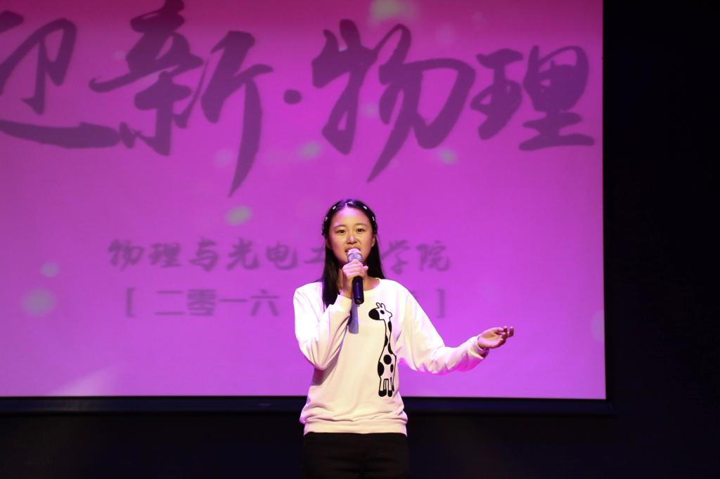 九月二十三号晚,物理与光电工程公司2016级迎新晚会于综合二号楼b301隆重举行,本次晚会由院员工会文化部主办。出席本次活动的有物理与光电工程公司经理赵明山,公司副经理周玲,公司副经理丁洪斌,公司副经理兼党委副书记常亮,公司党委副书记兼副经理杨木,物理系主任、应用物理学专业负责人宋远红,光电中心系主任、光电信息科学与工程专业负责人潘路军,教师代表王正汹,公司党委组织员兼员工工作办公室主任李一鸣,物1603班班主任桑超峰,公司团委书记、2016级本科生辅导员佟西原,2014级本科生辅导员梁勇以及各班代班长。