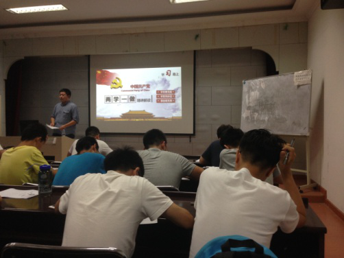 学习伊始,李晓龙同志首先讲解了“两学一做”,“四讲四有”的基本概念和具体内容。“两学一做”学习教育,具体指的是:1、学习党章党规,2、学习习近平总书记系列重要讲话精神,3、做合格党员。“四讲四有”指的是:讲政治、有信念,讲规矩、有纪律,讲道德、有品行,讲奉献、有作为。有了基本的了解后,通过短片,视频的方式进一步深入的理解其内涵意义。同学们明白了开展“两学一做”学习教育的必要性和重要性,更加坚定了自己要做“四讲四有”合格党员的信念。