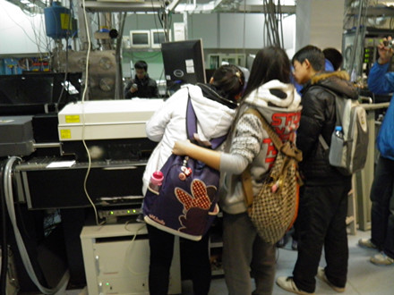 在参观的过程中,化物所专业的研究人员耐心地为同学们讲解现代前沿技术,飞秒激光、超低温反应容器、分子束交叉反应等一系神奇的技术走出纸面,生动地展现在同学们眼前。同学们热情高涨,积极地配合讲解员,把看见的高端技术与在公司学到的理论知识相联系,将理论与实践相结合。