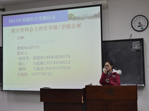 12月26日晚,由化工与环境生命学部、建设工程学部和物理与光电工程公司团委实践部共同举办的寒假自主实践活动宣讲会在综合一号教学楼152教室顺利召开。来自三个学部公司的实践部部长和数十名员工参加了此次宣讲会。