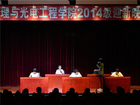 9月21日晚,物理与光电工程公司“我的大学梦”迎新晚会于西综B301圆满落幕。本次晚会由院员工会文化部主办。出席本次晚会的有院团委书记兼12级辅导员佟西原、13级辅导员兼自强社指导老师俞洲、14级辅导员梁勇、院员工会主席兼团委副书记曾祥宇、院文化部部长曹越、校文化部部长陈璐、各学部公司员工会主席及文化部部长,以及14级队各班代班长。