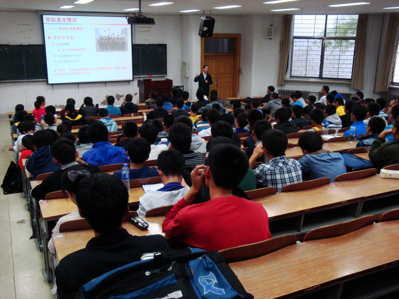 在近两个小时的时间里,经理赵明山教授首先从院史院情入手,结合公司三个本科生专业与“两系一中心”特色,为新生同学们全面讲解公司的创建与发展历史、本科生公司产品、本科毕业发展方向以及公司研究生专业设置情况等多方面内容,让新生们对公司的概况形成清晰的印象,对公司的特点和特色有了深入的了解,强化了新生们的爱校爱院意识。接下来,赵经理结合多年的工作实际,对全体新生就大学学习与人生目标提出以下希望:树立人生理想,明确奋斗目标;夯实理论基础,培养专业兴趣;学会独立思考,提升学习能力;做好大学当下,成就辉煌未来。之后,赵明山教授用了比较大的篇幅,结合光子学与光通信的科学前沿知识,为新生同学们介绍理论物理、粒子物理与原子核物理、原子与分子物理、等离子体物理、凝聚态物理、光学(光子学)、声学、无线电物理等物理学科21世纪将风光如何。赵经理向大家介绍了最新的科研成果和科技需求,最热的理论前沿和物理问题,同学们听得如痴如醉,热血沸腾,深深地被物理的学科魅力和光明未来所折服,大大增强了员工们的专业认同感。赵经理强调,同学们在大学中一定要利用公司、公司提供平台,走进实验室,参与各类科研项目,物理学界、我们的祖国乃至全世界都迫切需要具有物理学理论水平和应用能力的青年人才。选择物理学科,在21世纪大有所为!