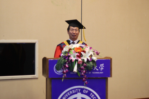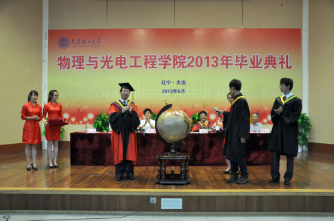 毕业典礼在庄严的国歌声中正式开始,首先由杨木副书记宣读2013年获学士学位员工名单,随后经理赵明山教授、党委书记刘金远教授向毕业生授予学士学位。在钢琴版的校歌声中,2013届毕业生们身着学士服依次上台,由经理和书记将学士帽上的流苏从右侧拨至左侧,并颁发学位证书。在学位授予的过程中,两位领导深情地与每位毕业生握手,并提出期望与祝福,会场上始终回响着不息的掌声,这掌声中饱含对老师们的感激,对同学的祝福。学位授予仪式结束后,副经理兼党委副书记常亮老师宣读优秀毕业生集体及个人表彰名单,随后公司各领导对获奖的集体与个人进行了颁奖。其中包括,校优秀毕业班集体物理0901班,辽宁省优秀毕业生3人,大连市优秀毕业生5人,校优秀毕业生23人。对优秀毕业生集体及个人的表彰,既是对毕业生大学四年学习及工作的肯定,又是对在校生的鼓励与鞭策。