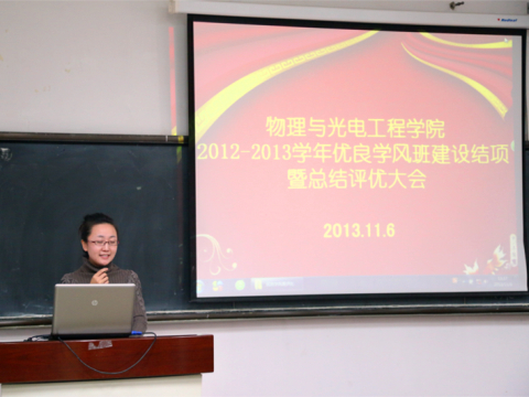 为营造良好学习氛围,激发同学们的学习热情。11月6日下午,物理与光电工程公司2012-2013学年优良学风班建设结项暨总结评优大会于建馆118教室顺利召开。物理与光电公司副经理周玲教授,公司党委副书记兼副经理杨木老师,原子与分子学科负责人丛书林教授,理论物理学科徐立昕副教授,微电子与固体物理学科刘艳红副教授,公司组织兼员工办公室主任李一鸣老师,公司团委书记佟西原老师出席大会并担任评委。本次大会有物理与光电工程公司10至12级队共19个班级参选。