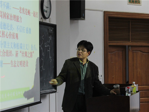 讲座在新生们热烈的掌声中开始。常亮老师首先就“老员工为何要入党”这一问题进行分析。他指出:时下老员工入党俨然成为一种“潮流”。接着,常亮老师从“青年员工的入党动机分析”、“生无信仰心、恒被他笑具”、“最新时事动态解读” 、“如何成就自己的信仰”以及“组织发展入党程序”五部分做了详解。他对当前老员工五种不同的入党动机进行了深入透彻的分析,讲解了信仰的重要性和两种科学解读“共产主义信仰”的方法。又结合“香港占中”、“马航MH 370”等最新时事,从我国当前的国情、不足与矛盾、周边形势、国际形势背景等方面对时事动态进行了解读。而在分析国际形势背景时,常亮老师指出:中美矛盾核心根源在于意识形态之争,本质则是经济利益之争。同时向新生们介绍了入党的流程以及申请入党人、入党积极分子、发展对象之间的区别与联系,并向新生们阐述了入党申请书的一些必要规范和细节。期间、他还为新生们讲述了自己在朝鲜时的见闻,幽默诙谐的语言使员工们多次爆发出热烈的掌声。
