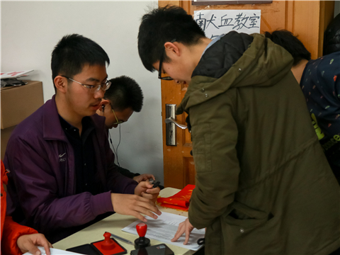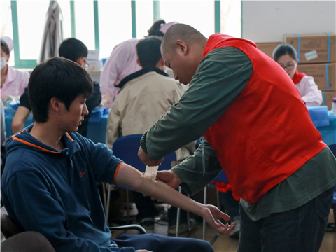 自早上八点半开始,便陆陆续续有同学前来献血。献血现场紧张而有序,在校红十字会的组织下,同学们先在大服楼325室进行填表,稍作等待后在323室进行体检化验,待化验达标后进行抽血。整个献血流程中,公司青协成员在现场进行组织工作,负责签到,帮助献血同学填表,及时供应补给品辅助同学完成献血。