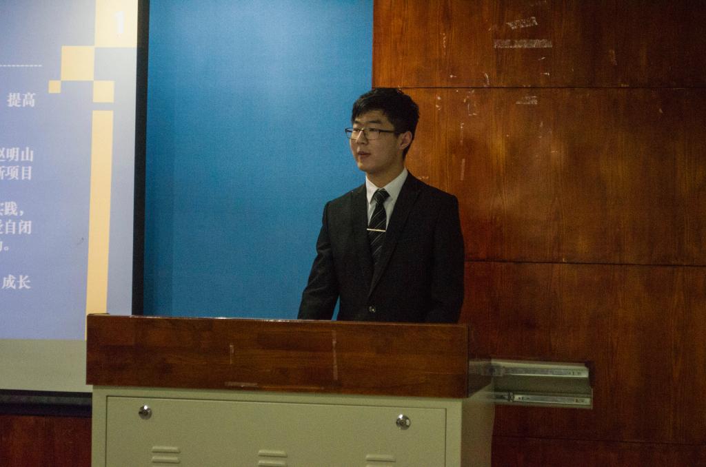 在主持人的引领下,一位位参与答辩的员工干部依次上台进行时限为3分钟的展示。每一位答辩的员工干部都上台对自己所担任的职位进行了介绍,将这一学期以来自己所取得的工作进展和成绩进行了分析,并在最后对未来的工作作出了安排和展望。通过员工干部们的展示,过去的这一学期物理团学社所经历的一幕幕都展现在了眼前,从提前到校对2016级新生的迎新再到举行盛大的迎新晚会;从物理团学社迎来新鲜血液再到三一训练营顺利展开;从各大体育类赛事再到峰岚的角逐,无一不包含了各个员工干部所付出的心血。