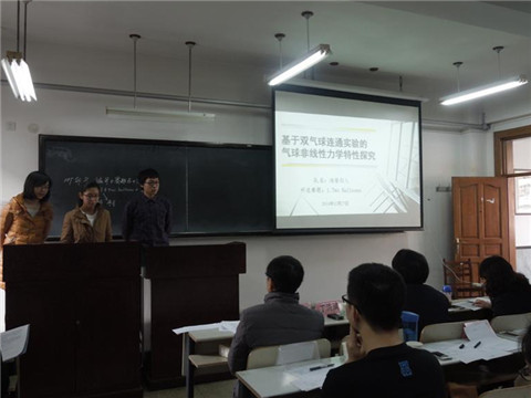 答辩过程中各小组成员默契配合,分工协作,通过PPT等形式展示他们所获得的丰富成果。简陋的自创实验仪器,纷繁而又浸透着汗水的数据和图表,抵挡不住思维风暴的层层展开,有些青涩但又厚重的研究成果给各位评委老师和观众留下了深刻的印象。提问环节中,评委老师针对各队的情况提出了专业而又有建设性的问题,既起到了与答辩队员相互交流的作用,又对比赛队伍的下一步工作有重要的启发意义。综一354教室充满了浓郁的学术氛围。