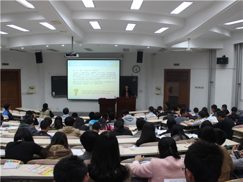 期间,胡月老师带领大家闭目凝神,引导同学们做语言游戏并交流感想,播放精彩的生命演变视频,将复杂的问题简单化,沉重的话题娱乐化,阐述理念和方法的同时更是引来大家不断的欢笑和感叹。大一学子在与胡月老师的沟通中共同寻找面对大学和未来生活的正确思想及其调节方式,学习做一个真正快乐的人。